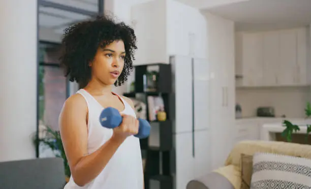 3. 덤벨을 들어 올릴 때 손목을 천천히 회전시켜 이두근의 수축을 극대화합니다.